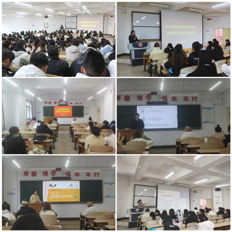 为进一步指导2021级思想政治教育专业教育实习,调动学生实习积极性,提升教学能力,3月2日上午,马克思主义学院召开2021级思想政治教育专业教育实习动员大会暨教育实习岗前试讲培训。马克思主义学院院长张莉、副院长杜海燕、实习指导教师和2021级全体学生参加此次活动。
