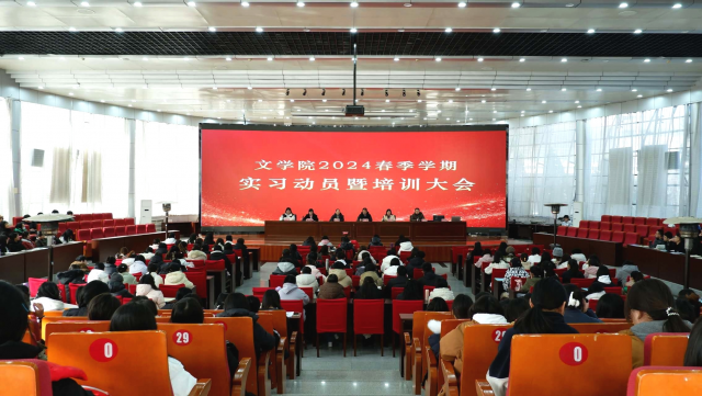 2月29日下午,文学院2024年春季学期实习动员暨培训大会在慎思楼报告厅线上线下同步进行,邀请北京师范大学大同附中党总支书记、山西省中小学教学名师姚建华做专题培训,学院院长张忠堂、院党委副书记张英芳、副院长关秀丽、汉语言文学系主任李润民、毕业实习带队教师、辅导员以及全体2024届实习生参加会议。