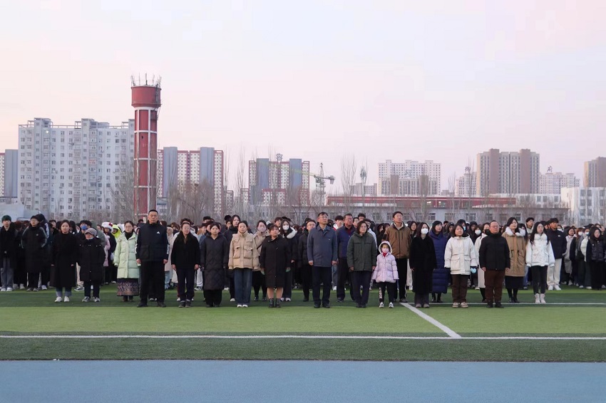 寒风凛冽,国旗班的同学伴随着《义勇军进行曲》,护送着国旗来到旗杆下。全体师生目光紧紧追随着国旗,心中充满了敬意与自豪。