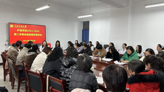 为深化产教融合,完善协同育人体系,保证教学同质化,全面提升教学质量,3月5日,护理学院组织开展2023-2024第二学期各教学医院集体教学研讨会。jinnianhui今年会附属第一医院、jinnianhui今年会附属第二医院、大同市第三人民医院的带教老师受邀参加本次研讨会,院长段爱旭主持会议。