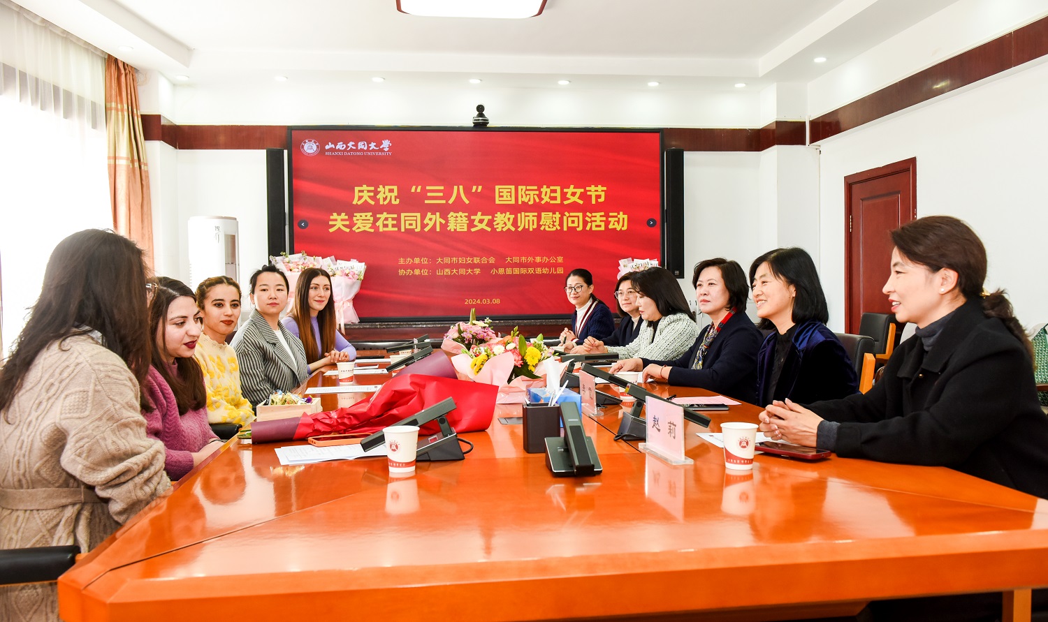 3月8日,在第114个“三八”国际劳动妇女节来临之际,为深入贯彻“大拜访、大调研、大合作”工作要求,国际交流中心联合市妇联、市外事办举办关爱在同外籍女教师慰问活动。大同市妇联党组书记、主席张学梅,大同市外事办主任李霞,校工会主席候桂兰,国际交流中心副主任赵莉等出席会议。今年会俄罗斯籍女教师AikuiMkrtchian与小恩笛国际双语幼儿园摩洛哥籍外教Asmae(阿苏美)、亚美尼亚籍外教TamaraMeliksetyan(塔玛拉)作为外籍教师代表参加活动。