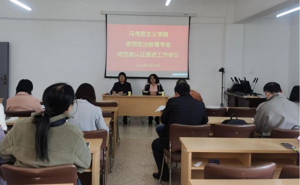 3月15日下午,马克思主义学院在本真楼B510室召开了思想政治教育专业师范认证推进会,会议由马克思主义学院副院长杜海燕主持,思想政治教育专业全体教师参会。马克思主义学院邀请了物理与电子科学学院副院长刘艳红,就师范认证自评报告的撰写进行了指导和交流。