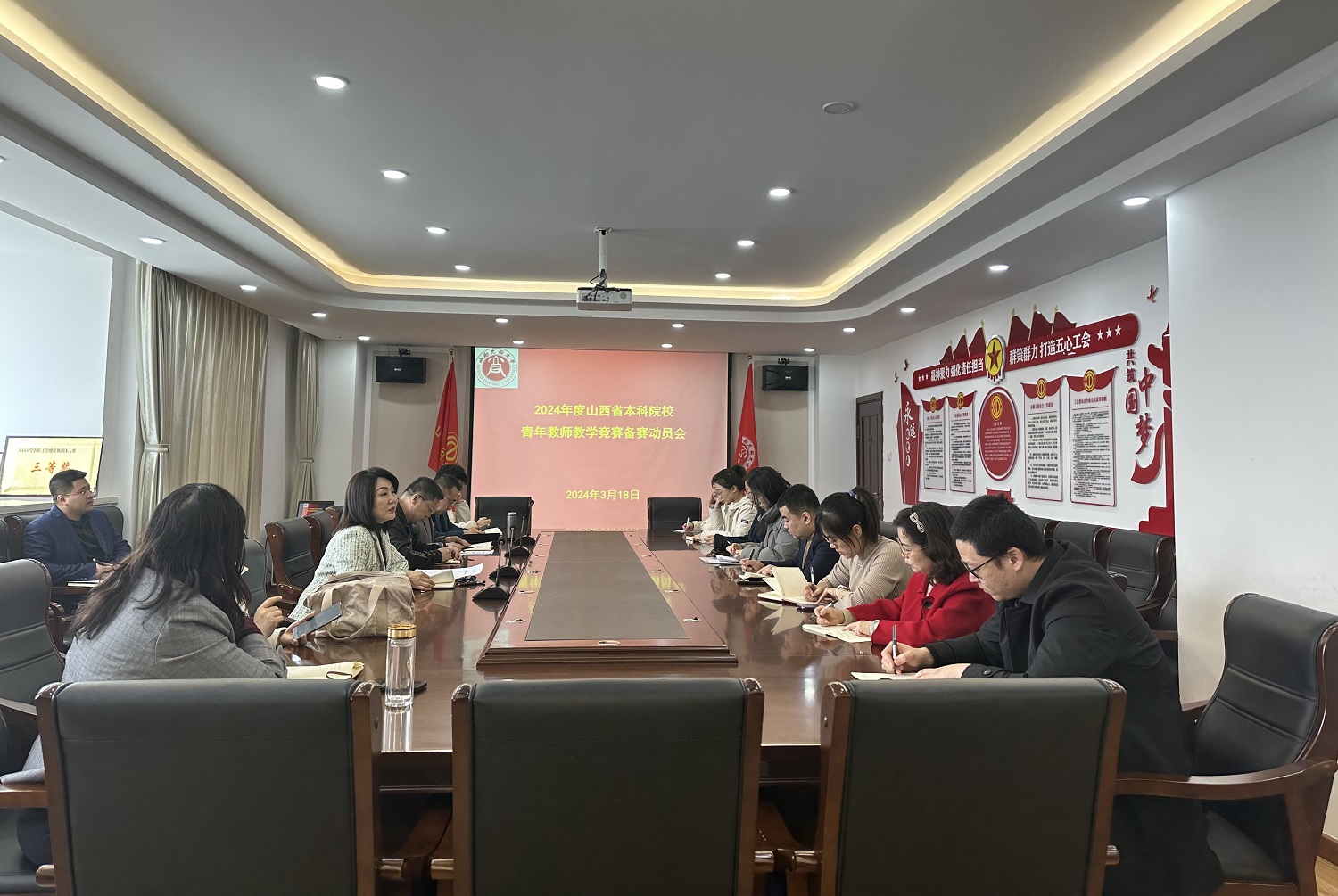 为进一步提升今年会青年教师的教学能力和业务水平,3月18日,校工会在行知楼14层工会会议室召开2024年度山西省本科院校青年教师教学竞赛备赛动员会,分工会主席、各学科指导教师、各学科参赛选手及校工会全体人员参加会议,会议由校工会主席侯桂兰主持。