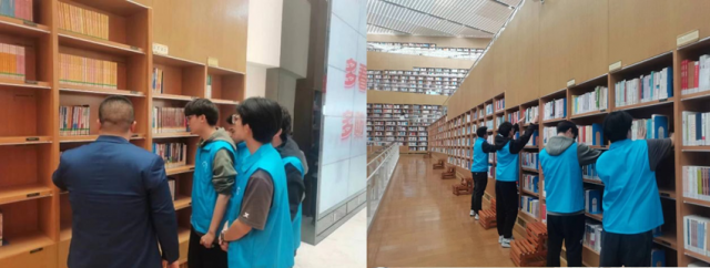 在志愿活动中,通过工作人员的细心讲解,志愿者们充分了解到如何在馆内自助办理阅览卡和借阅卡,以及如何查找、借阅、归还馆内图书等工作内容。随后,志愿者们分成多个小组奔赴各自的“工作岗位”,在图书馆老师的带领下对书架上的书籍进行分类汇总,对“书墙”进行清扫整理等工作。工作认真高效、井井有条,充满热情,获得图书馆负责人的肯定与赞扬。