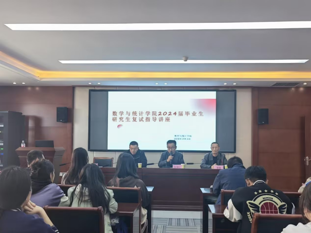 数学与统计学院为帮助2024届考研学子全面了解复试流程和方法,助力同学们顺利通过复试环节,3月22日,数学与统计学院邀请党委研究生工作部副部长张继红和研究生部招生就业办公室主任昝智超在本真楼北312就业报告厅做研究生复试指导讲座。讲座由数学与统计学院党委副书记李磊主持。