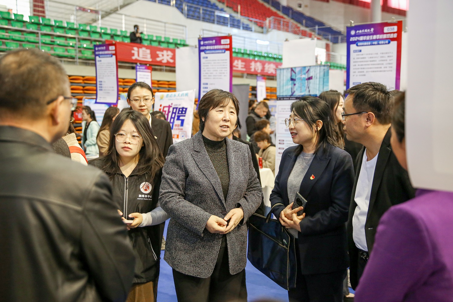 赵水民、姚丽英、寇福明、郭继林、张旻、石凤珍等校领导深入招聘会现场指导调研,与用人单位和毕业生交流互动,倾听用人单位对学校人才培养工作的意见建议、了解招聘进展情况,向用人单位推荐介绍相关专业和第二学士学位毕业生培养情况,向学院班子询问2024届毕业生就业工作开展情况,要求压紧压实责任,多措并举,将“稳就业、保就业”任务落实落细。