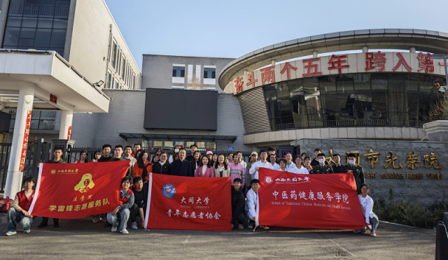 为深入学习贯彻党的二十大精神,激励新时代青年以实际行动赓续红色血脉,发挥优秀退役大学生士兵的示范引领作用,进一步推动爱国主义精神在青年群体中传承发扬,更好地培养新时代大学生爱党爱国爱军的情怀。2024年3月31日下午,校团委副书记黄艳芳与中医药健康服务学院负责人白振军带领中医学院、法学院部分教师、校青年志愿者协会指导教师以及4名退役大学生士兵与48名志愿服务者一同前往大同市光荣院,慰问并看望抗战英雄,为他们送去温暖与关怀。开展了学习革命文化,传承红色基因,践行雷锋精神,发扬敬老美德的志愿服务活动。