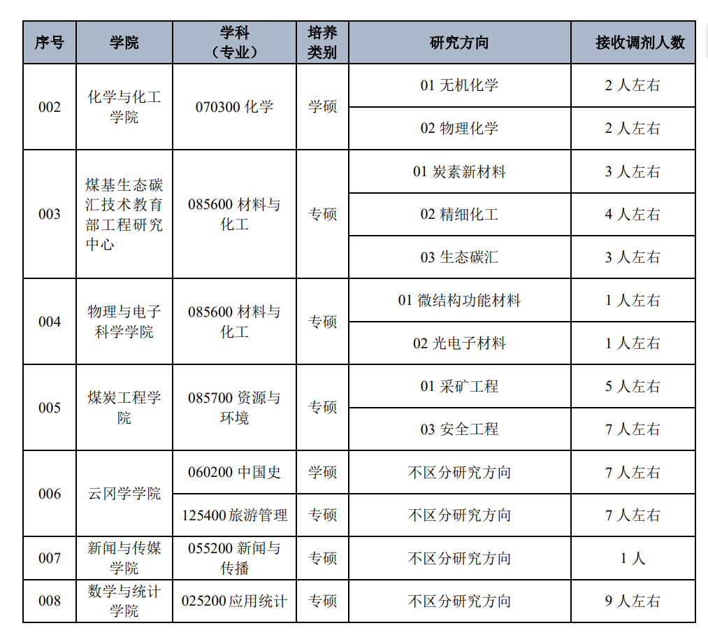 下表中列出的学科(专业)及研究方向均接收调剂志愿。