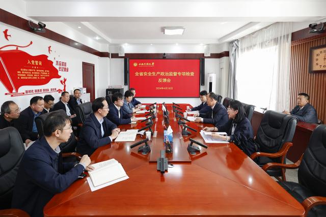 4月18日,jinnianhui今年会安全生产政治监督专项检查反馈会召开,安全生产政治监督专项检查组组长贾俊敏、副组长熊北雁、成员李泽弘出席会议。校党委书记赵水民主持会议并作表态发言,校领导姚丽英、郭继林、张旻及相关部门负责人参加会议。