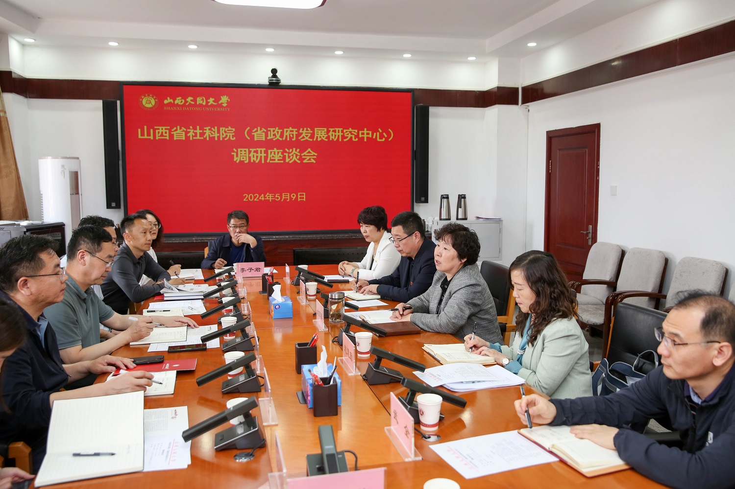 5月9日,山西省社科院党组成员、副院长赵文江一行来校调研交流。校党委副书记、校长姚丽英出席并主持交流座谈,大同市政府发展研究中心主任王爱民,校相关部门、学院负责人参加。
