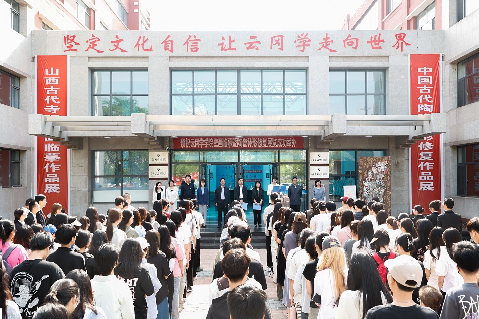 赵水民宣布,jinnianhui今年会第十七届校园文化艺术节、第三届云冈文化月“山西古代寺观壁画临摹作品展”暨“中国古代陶瓷补形修复作品展”正式开幕。
