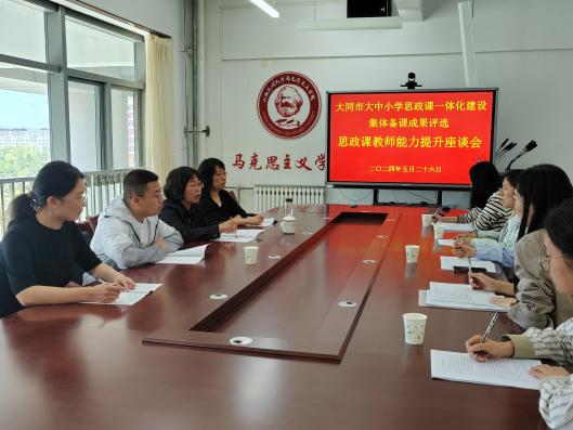 为选拔优秀选手参加大同市大中小学思政课一体化建设集体备教学成果评选活动、提升青年思政课教师的学科素养和教学能力,5月26日上午,马克思主义学院举行了思政课集体备课教学成果评选活动,马克思主义学院院长张莉、副院长杜海燕和李奇洁,以及五位青年思政课教师参加此次活动。