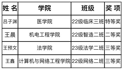 本次大赛,全省共有40所高校的13515名在校学生参与,8所院校获优秀组织奖,172名学生获个人奖。其中本科院校组特等奖3名,一等奖8名,二等奖15名,三等奖60名。