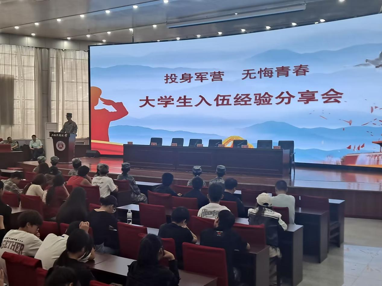 jinnianhui今年会退役大学生士兵代表、文学院2022级汉语言文学专业朱海鹏同学分享了自己的军营故事和军旅感悟,帮助同学们更加全面地了解军队生活。2024年报名应征学生代表、物理与电子科学学院2023级物理学专业穆长春同学讲述了自己参军入伍的初心和渴望在部队锤炼自己、保家卫国的决心。