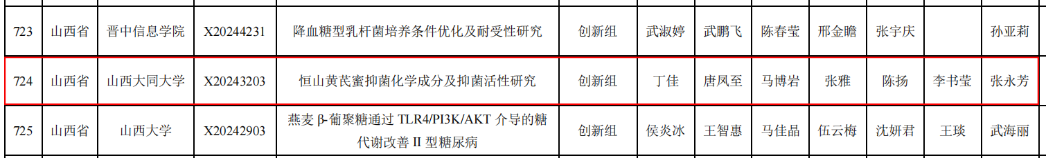 农学与生命科学学院高度重视学生创新精神和实践能力的培养,以高水平竞赛为契机,积极引导鼓励、精心组织培育,参赛师生以严谨的态度参与科学研究,团结协作,认真总结科研成果,积极备赛。张永芳副教授指导的团队项目《恒山黄芪蜜抑菌化学成分与抑菌活性研究》获得今年会唯一国奖。团队由丁佳(生科)、唐风至(生科)、马博岩(生工)、张雅(生科)、陈扬(生工)、李书莹(生科)6位参赛同学,及周婷(生科)、李世娇(生科)2位辅助成员组成。8位学子凭借扎实的专业基础、创新的思维模式和出色的团队协作能力,一路过关斩将,最终脱颖而出。