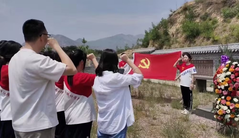 6月29日,数学与统计学院一行赴原平市同川镇爱国主义教育基地和国防教育基地崞县营英烈陵园开展“缅怀先烈事迹,传承红色基因”主题党日活动。大家参观了崞县营烈士墓、崞县营上社战斗记事碑、崞县营抗日英烈纪念碑、芦雁沟抗战遗址等,重温入党誓词并举行了向烈士陵园敬献花篮仪式。