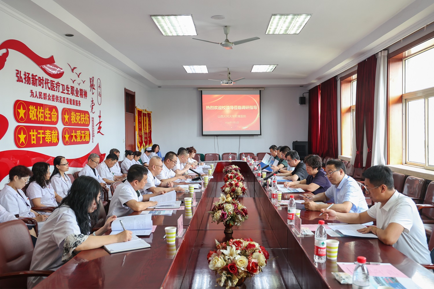 7月1日,校党委书记赵水民,校党委副书记、校长姚丽英,校党委常委、副校长马轶明来到附属医院,听取工作汇报,就医院党建工作、班子建设、学科建设、运营管理、人才储备、中医认证等开展调研指导。