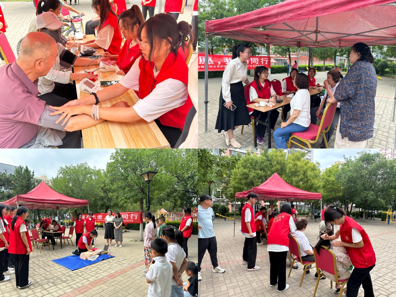 志愿者们详细了解了社区的发展历程与现状。在社区工作人员的帮助下,志愿者们在中心广场设立了服务点,为社区居民提供免费的血压测量服务,并针对每个人的健康状况提出了专业建议。