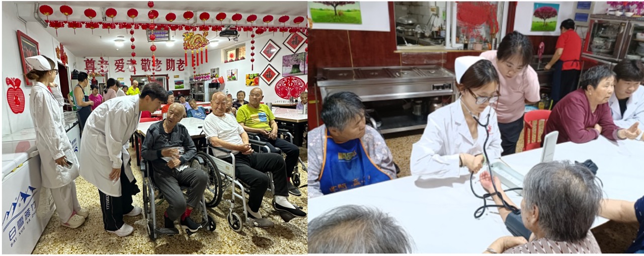 在老年活动大厅,志愿者们热心与老人进行交谈,悉心询问日常生活起居、活动饮食、睡眠等状况,提供测血压、健康知识宣讲、科学养护等服务。结合专业护理知识,在随队专业指导老师的协助下,叮嘱老人日常用药、科学护理等注意事项,为老人们提出的健康问题答疑解惑,让老人们倍感关怀。
