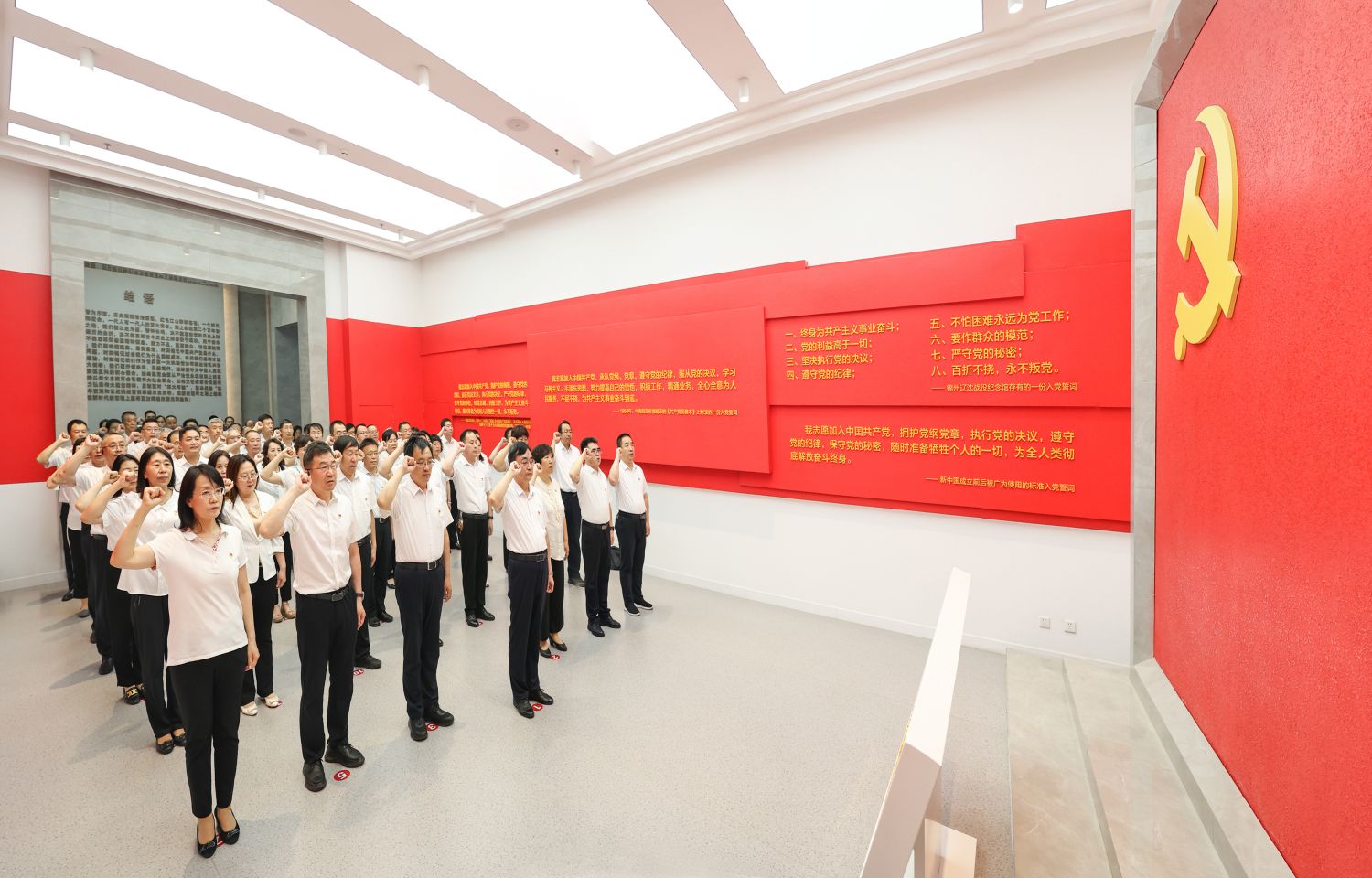 参观结束时,大家来到宣誓厅,在校党委书记赵水民的带领下,重温入党誓词,感悟初心使命。
