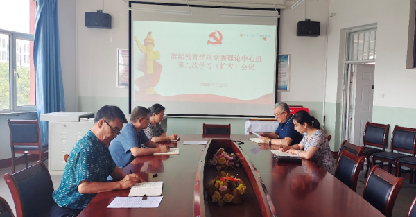 7月22日上午,继续教育学院在致知楼三层会议室召开党委理论学习中心组(扩大)学习会议,学习习近平总书记在中共中央政治局第十五次集体学习时的重要讲话精神,学习《求是》杂志发表的习近平总书记重要文章《新时代新征程中国共产党的使命任务》和习近平总书记主持召开中央全面深化改革委员会第五次会议上的重要讲话精神等内容。围绕党纪学习教育7月份研讨主题进行交流研讨。院长徐忠主持学习并作总结讲话。