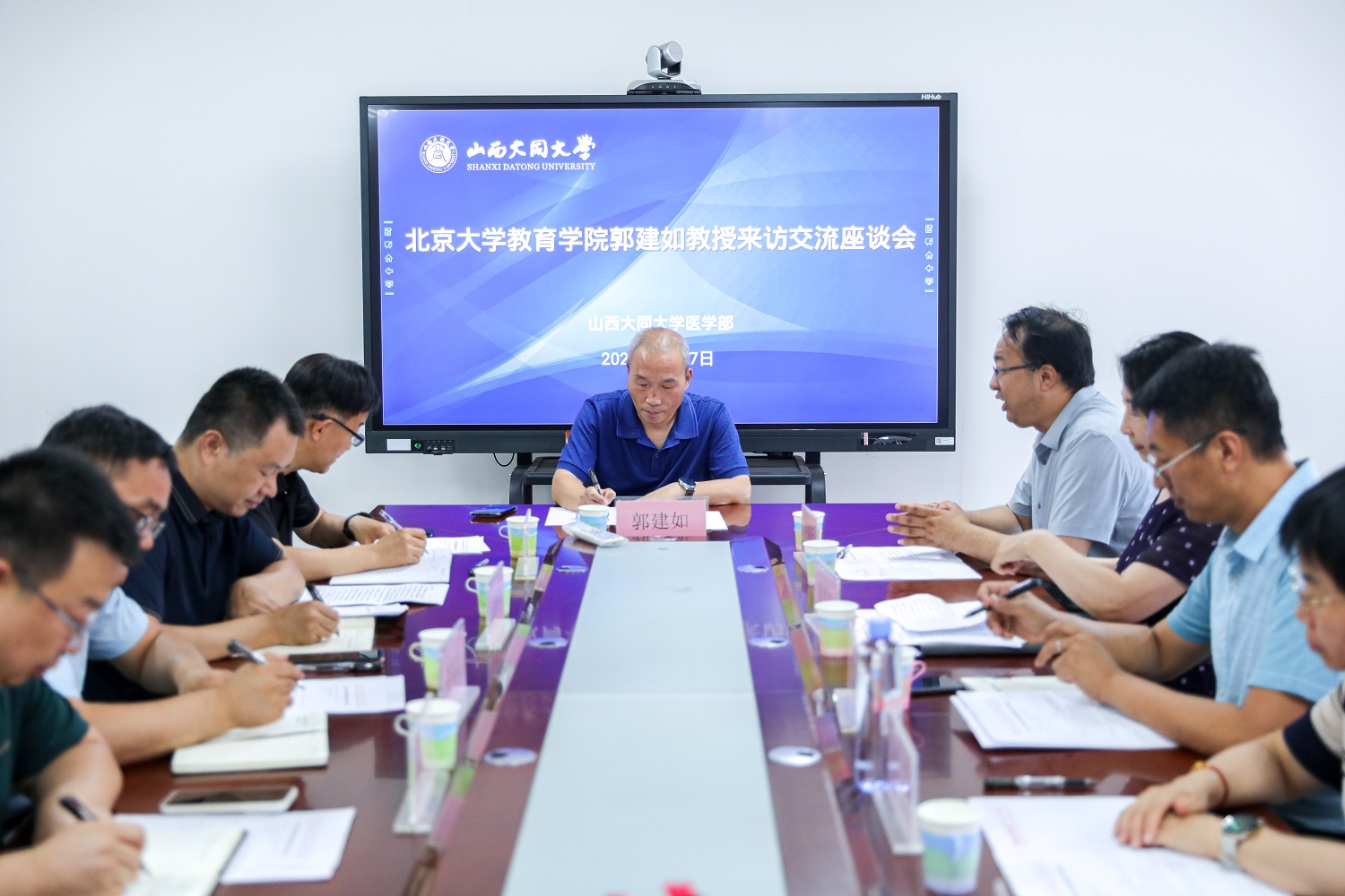 7月27日下午,北京大学教育学院郭建如教授应邀到今年会医学部指导工作。医学部、医学院、中医药健康服务学院、护理学院相关负责人和部分骨干教师参加了座谈会。