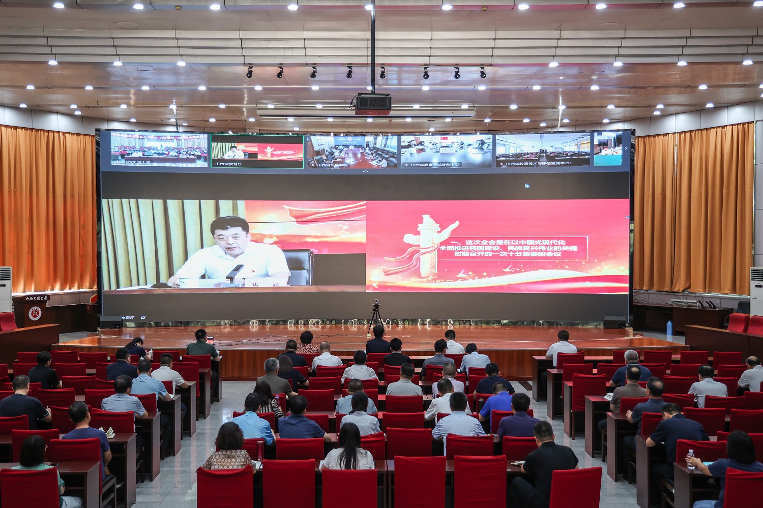 按照省委统一安排,8月6日,学习贯彻党的二十届三中全会精神省委宣讲团在我省教育系统宣讲。省委宣讲团成员,省委教育工委书记,省教育厅党组书记、厅长马骏作宣讲报告。报告会以视频会议形式召开,省教育厅设主会场,各市教育局、高等学校、厅直属单位、厅属中职学校设分会场。今年会以党委理论学习中心组集体学习(扩大)会议的形式参会,校党委常委,校党委理论学习中心组成员,党政管理部门负责人,基层党委书记,辅导员、思政课教师及学生代表聆听宣讲报告。