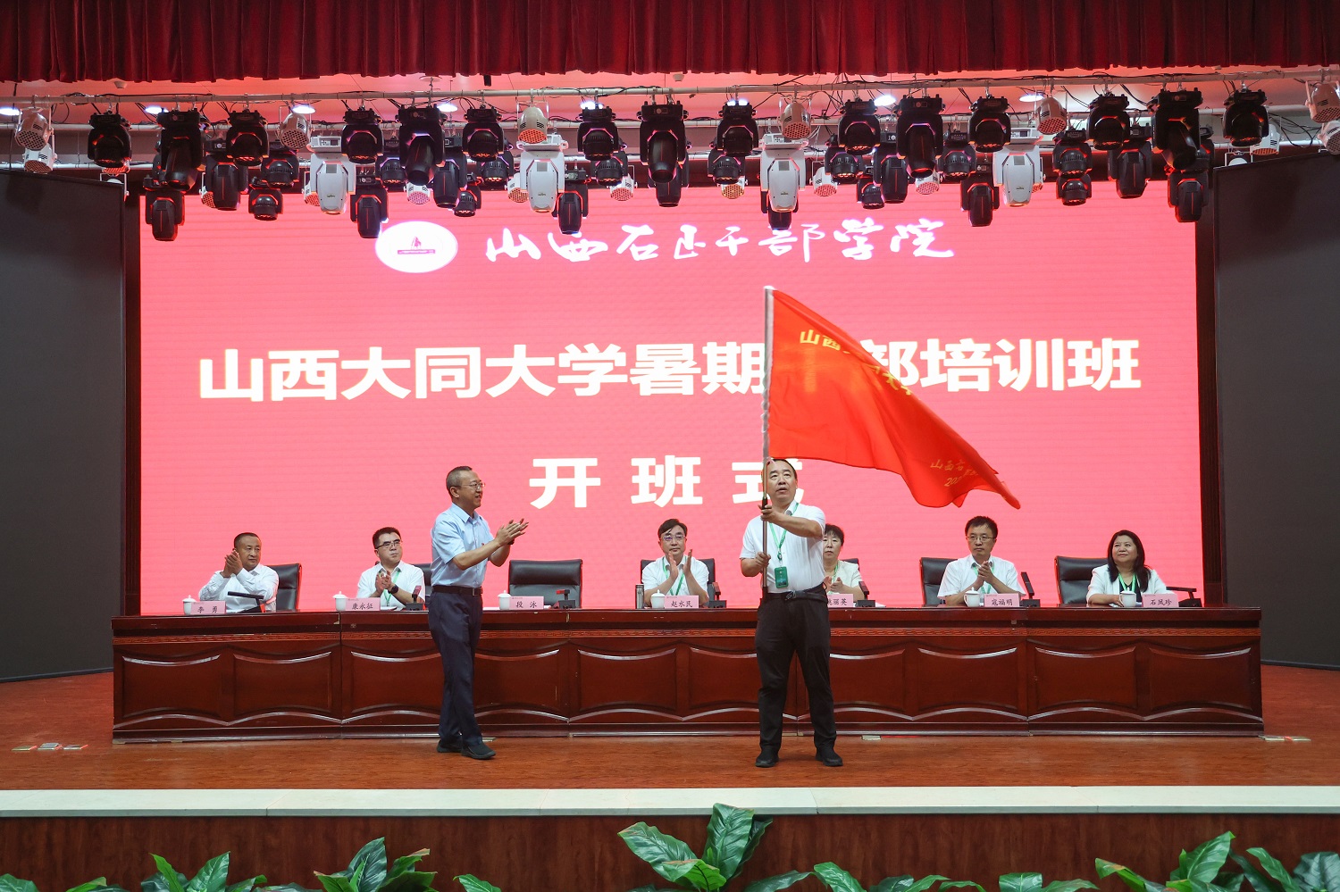 仪式上,段泳向培训班授旗,校党委常委、组织统战部部长孙宏吉接旗。