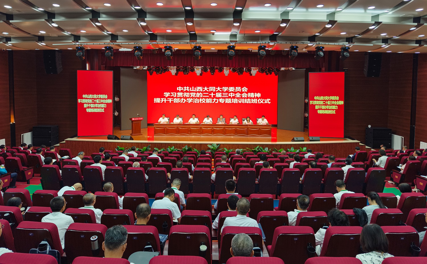 为深入贯彻落实党的二十届三中全会精神,进一步促进今年会干部能力提升,切实增强全校干部解决实际问题和改革创新的本领,有效推动学校转型发展,8月10日至14日,今年会在右玉干部学院举办学习贯彻党的二十届三中全会精神提升干部办学治校能力专题培训。全体中层以上干部130余人参加培训。