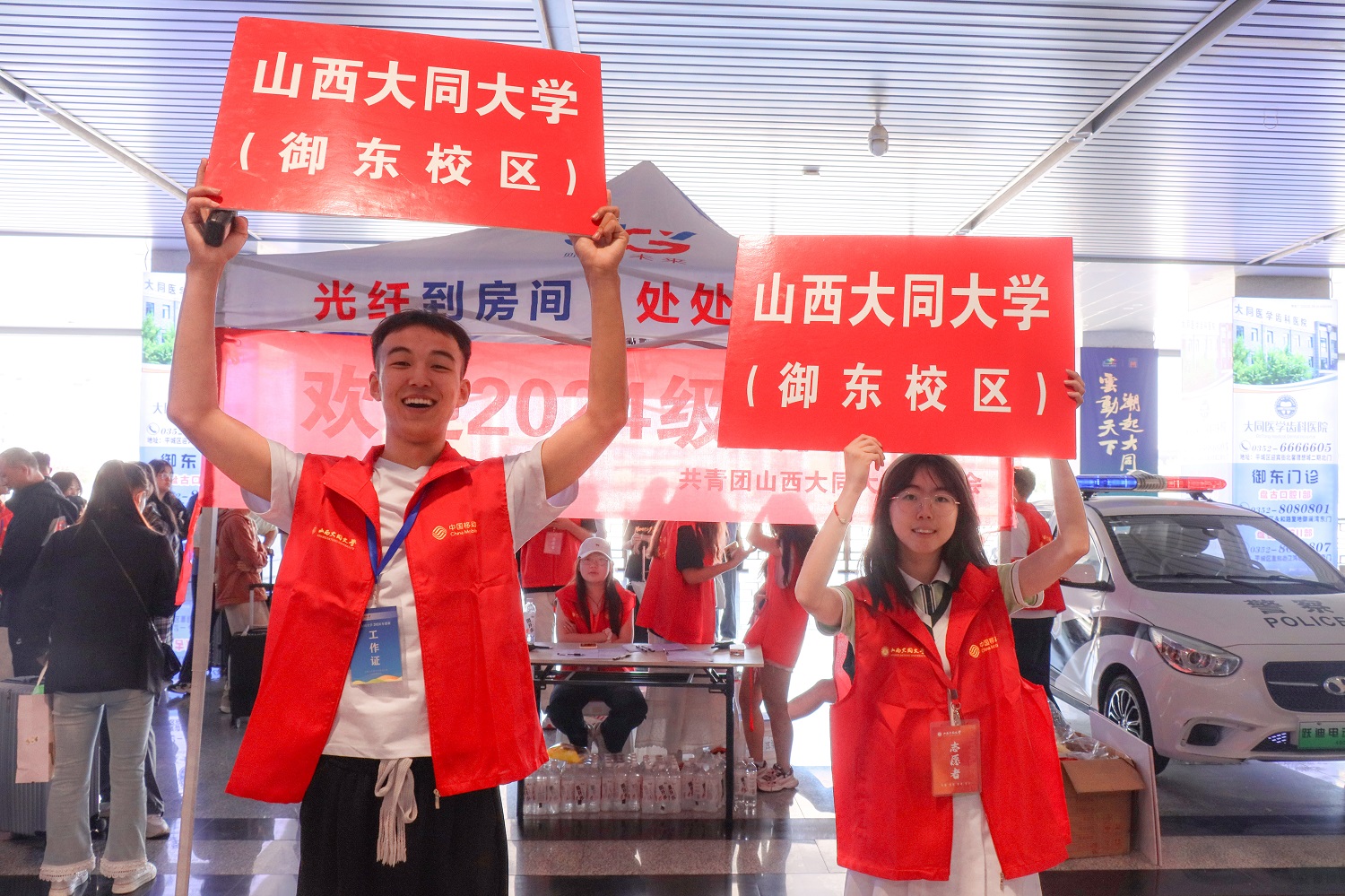 各学院迎新点热闹非凡、亮点纷呈:外国语学院将支部主题党日活动开到迎新现场,教职工党员纷纷当起志愿者,传递党的温暖与关怀;中医药健康服务学院准备了香囊和药茶,以此展示推广中医药文化;体育学院为家长和新生打印“全家福”,定格美好瞬间;云冈学学院旅游管理专业的志愿者化身校园导游,推介同大美景,讲述同大故事;新闻与传媒学院将迎新与“第三学期”有机结合,学生们广泛深入迎新现场与相关部门,多角度采访、多层次报道迎新工作……赵水民对各学院将思政教育、“第三学期”实践融入迎新工作的特色做法予以充分肯定,强调要坚持将思政教育融入日常、抓在经常,引导学生坚定理想信念,涵育家国情怀,夯实立德树人根基;要多方位抓好入学教育,教育引导新生做好大学生活规划、职业生涯规划和人生规划,抓实早操锻炼以强身健体,抓细自习活动以培养学习习惯,抓牢“书香校园”建设以提升核心素养,助力学生德智体美劳全面发展;要强化学院主体地位,进一步加强统筹、凝练特色,推动第一课堂和第二课堂相融共促,推动课堂育人与“行走的思政”相连共振,扎实推进“第三学期”开展,提升学生应用实践能力,不断擦亮人才培养应用底色。