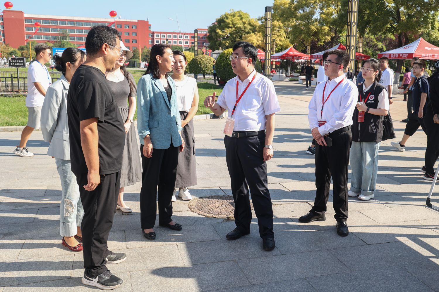 “同学,你是哪里人?”“对学校的第一印象如何,有什么意见建议?”姚丽英与新生和家长们亲切交流,关心他们来校的生活情况,认真听取他们的意见建议。她强调,相关部门要始终树牢以学生为中心的服务理念,想学生之所想、急学生之所急,全力以赴做好保障工作,让新生学得舒心、吃得放心、住得安心,以最佳的身心状态开启大学生活。姚丽英还耐心地向新生和家长们介绍学校学科专业特色,列举学校应用型人才培养举措成效,希望同学们在课堂中夯实专业功底,在实践实训中提升应用能力,在更为广阔的社会实践中锤炼过硬本领,为创造精彩人生打下坚实基础。
