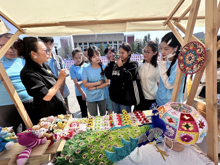 走下课堂,走入市集。课后杨雪飞女士和商学院指导老师一起带领学生,深入“薪火相传 同享非遗”主题市集中,与30位非遗传承人面对面交流,深入认识非遗,探讨非遗商业模式优化路径。