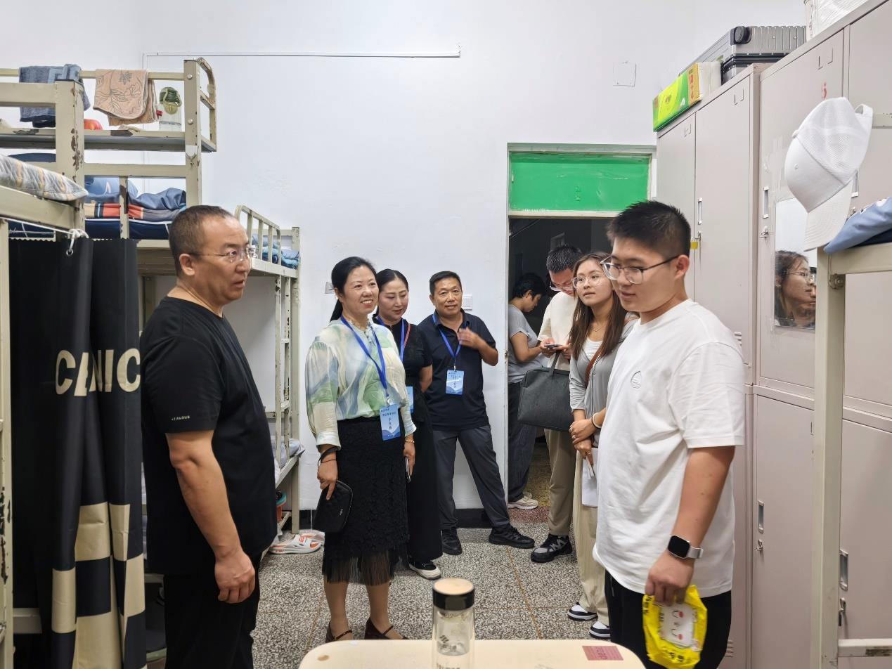 学院领导仔细察看了新生的住宿条件,包括宿舍设备的完好情况以及消防、电力等安全设施。他们对宿舍的卫生状况、储物柜等物品的配备情况进行了细致的检查。老师们详细询问了新生的家乡、专业选择、对大学生活的适应情况等。学院领导表示,每个宿舍都应设计自己的宿舍文化,努力打造学霸宿舍,同学间互相帮扶,共同努力,争取四年后都可以实现自己的梦想。他们同时鼓励新生们要珍惜大学时光,勤奋学习,努力提升自己的专业素养和综合能力,并建议新生们要积极参与各类校园文化活动和社会实践,拓宽视野,增长见识,为自己的未来打下坚实的基础。