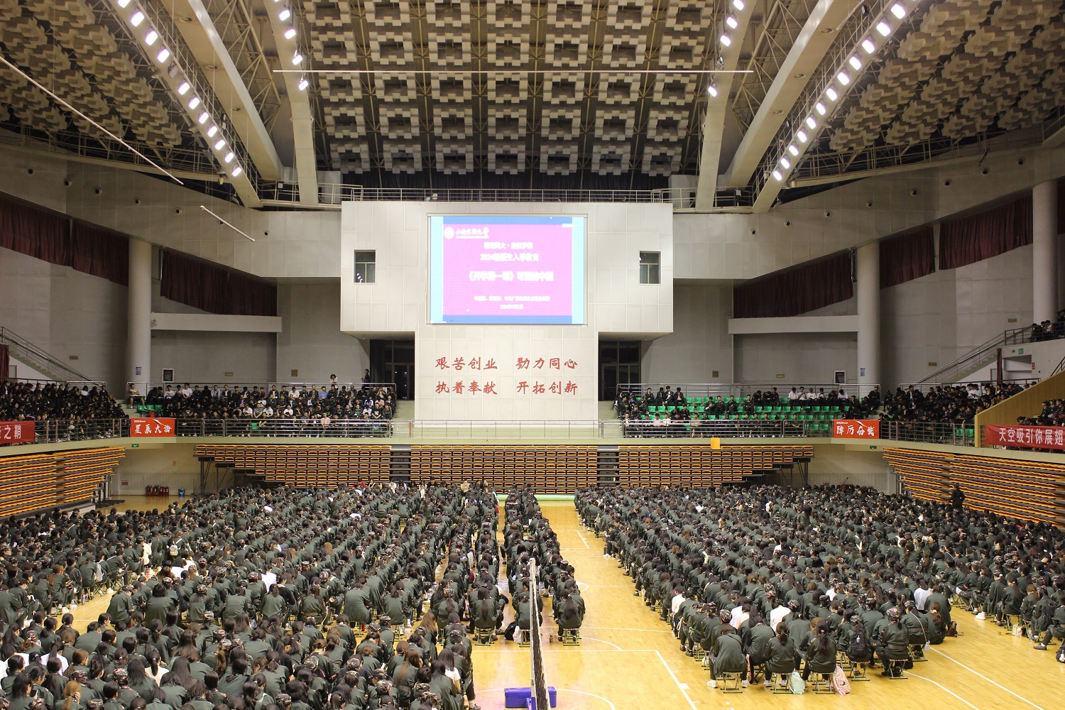 9月1日晚,今年会组织全体2024新生和新生辅导员一起观看由中宣部、教育部、中央广播电视总台联合制作的2024年《开学第一课》专题电视节目。主会场设在御东校区本真楼,天翔体育馆、新平旺校区分别设分会场。