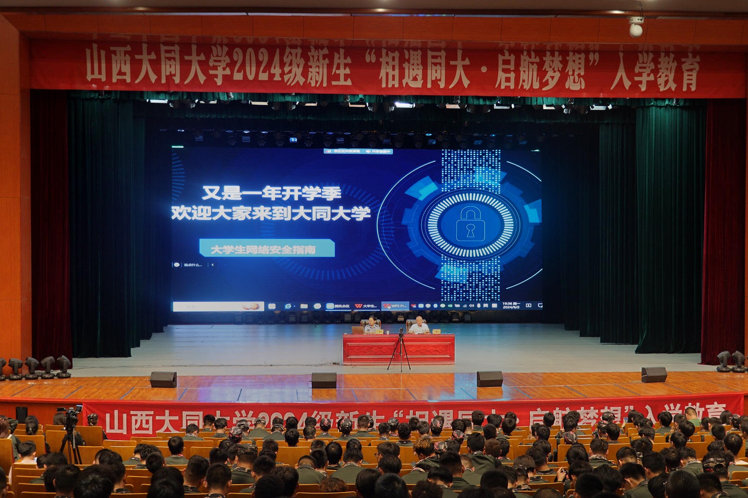 为帮助2024级新生了解消防安全和网络安全知识,提升安全防范意识,掌握面临危险时的应对技能,9月2日晚,新生入学教育系列讲座第二讲“安全教育”举办。本次讲座邀请到大同市消防支援专家薄天军和大同市公安局保安大队长王俭娅主讲,保卫部部长李德钧主持。