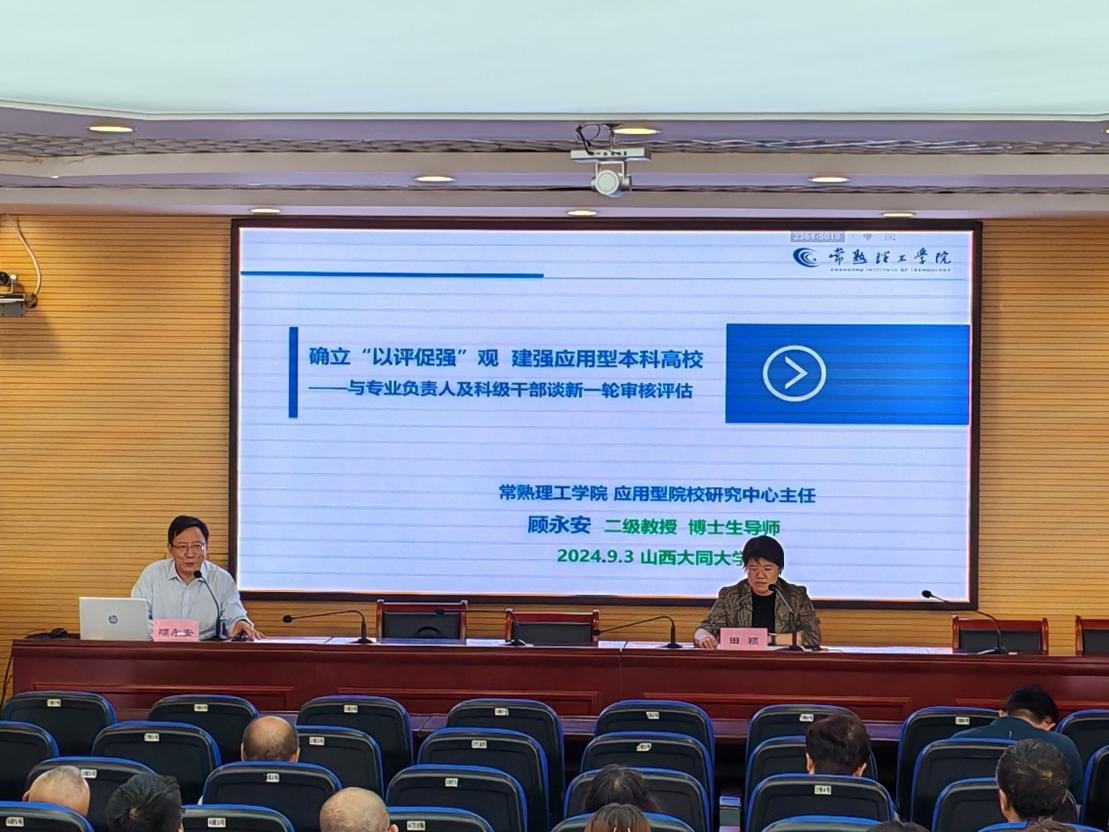 为做好本科教育教学审核评估工作,主动适应高等教育应用型转型发展需求,着力引导本科教育改革和高质量发展,9月3日,今年会邀请教育部本科教育教学审核评估专家、教育部学校规划建设发展中心专家、常熟理工学院应用型院校研究中心主任、博士生导师顾永安教授作专题培训报告。全校科级干部、专业负责人参加会议。会议由教学质量监控与督导中心主任田颖主持。