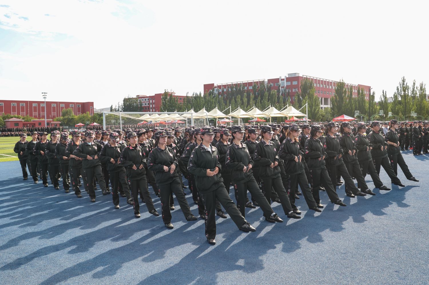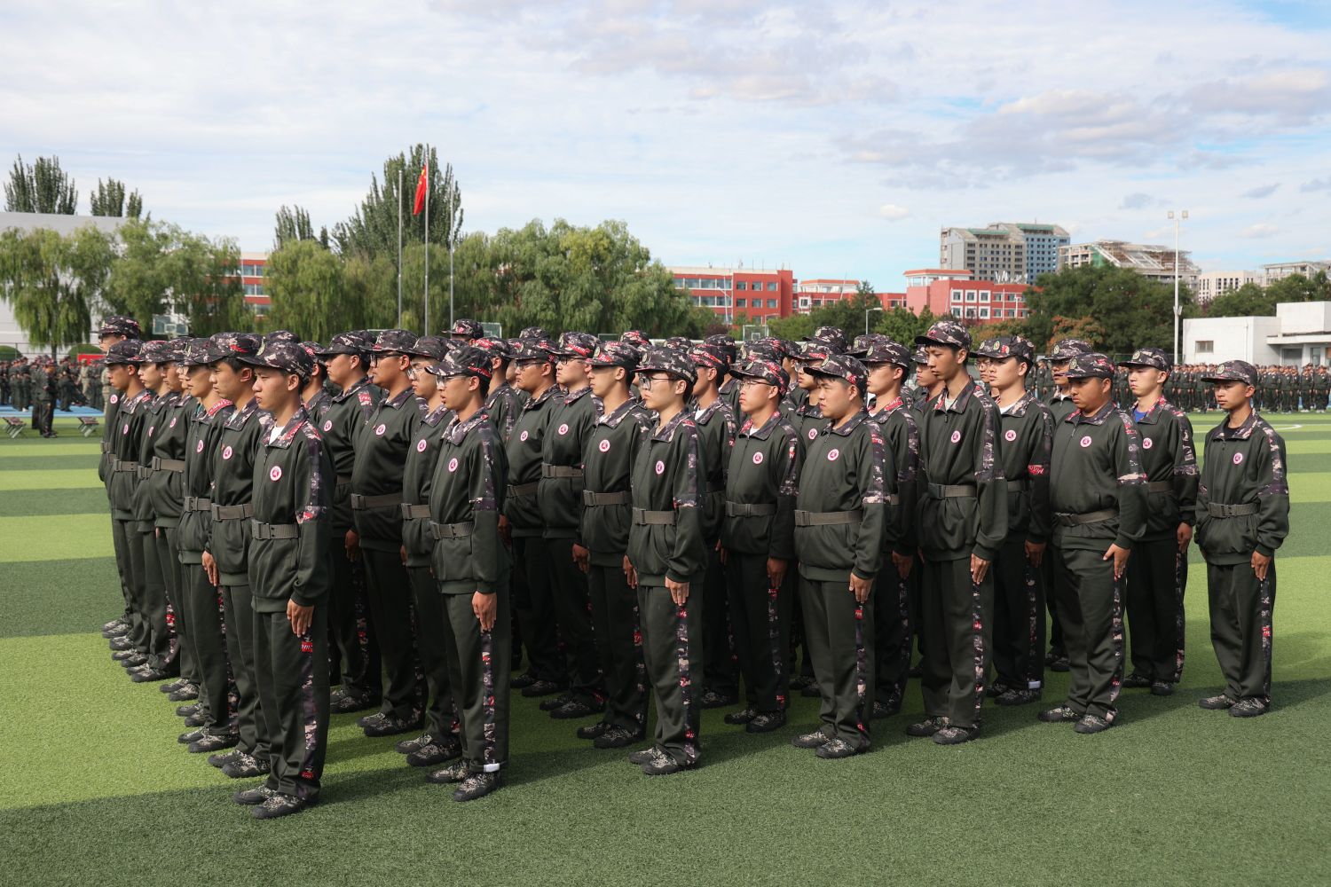 在过去的几天里,大一新生们以饱满的热情和顽强的毅力投入到军训中。他们顶烈日、冒风雨,在教官的严格指导下,认真完成每一个动作。站军姿,身姿挺拔如松;走正步,步伐整齐有力;练队列,动作协调一致。军训不仅锻炼了同学们的身体素质,更培养了他们的纪律意识、团队精神和坚韧不拔的意志品质。