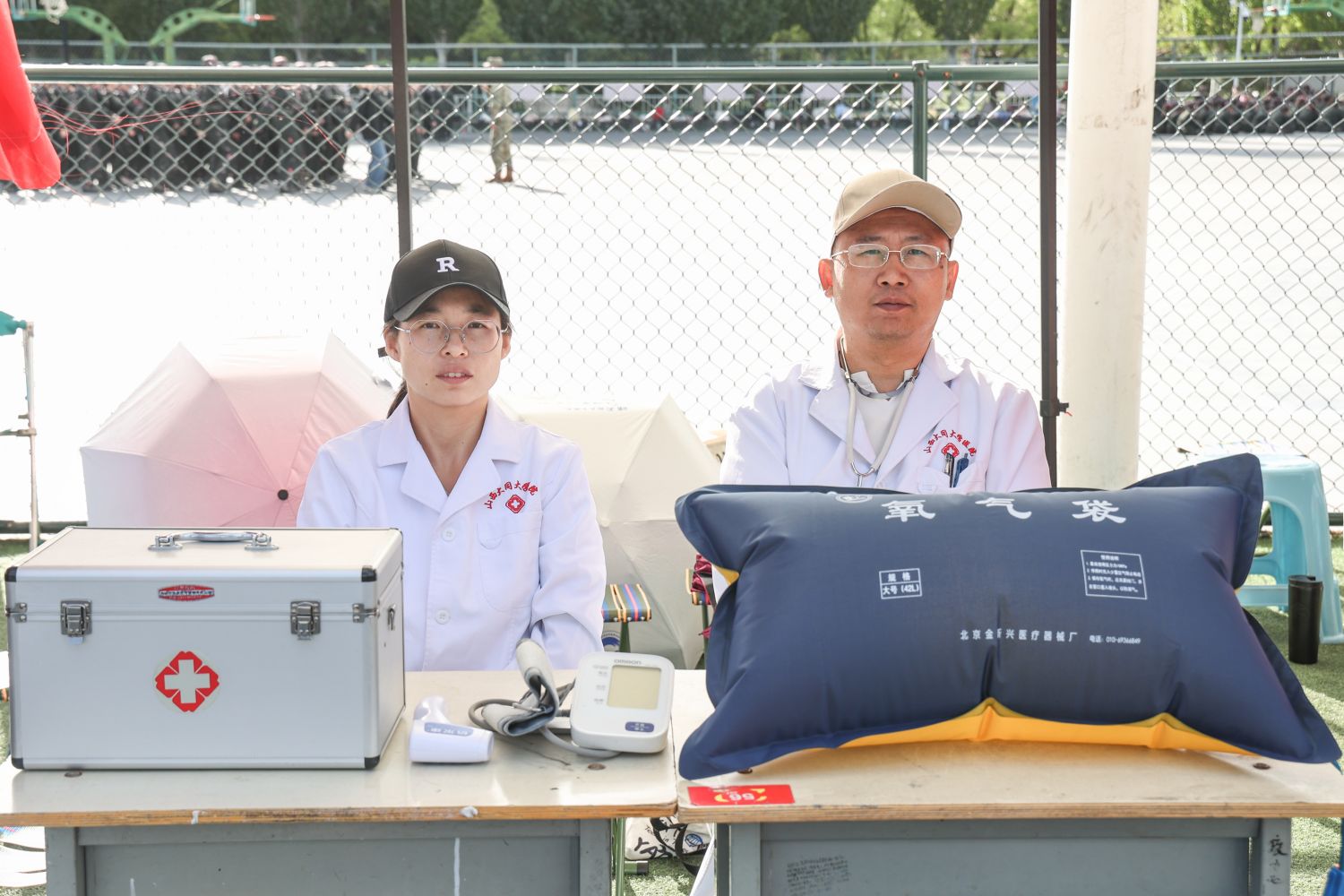 朝来夕归,校医务室设立的流动医疗服务点上的医师们每天坚守岗位,配备了各种必备药品和医疗用品,陪伴在同学们身边,及时处理突发状况,他们白色的身影不仅成为绿色训练场上最为独特的风景,而且她们可敬的职业精神和精湛的医护技能也为军训活动构筑了一道坚实的“健康防线”。
