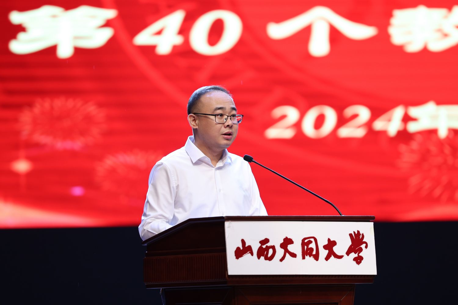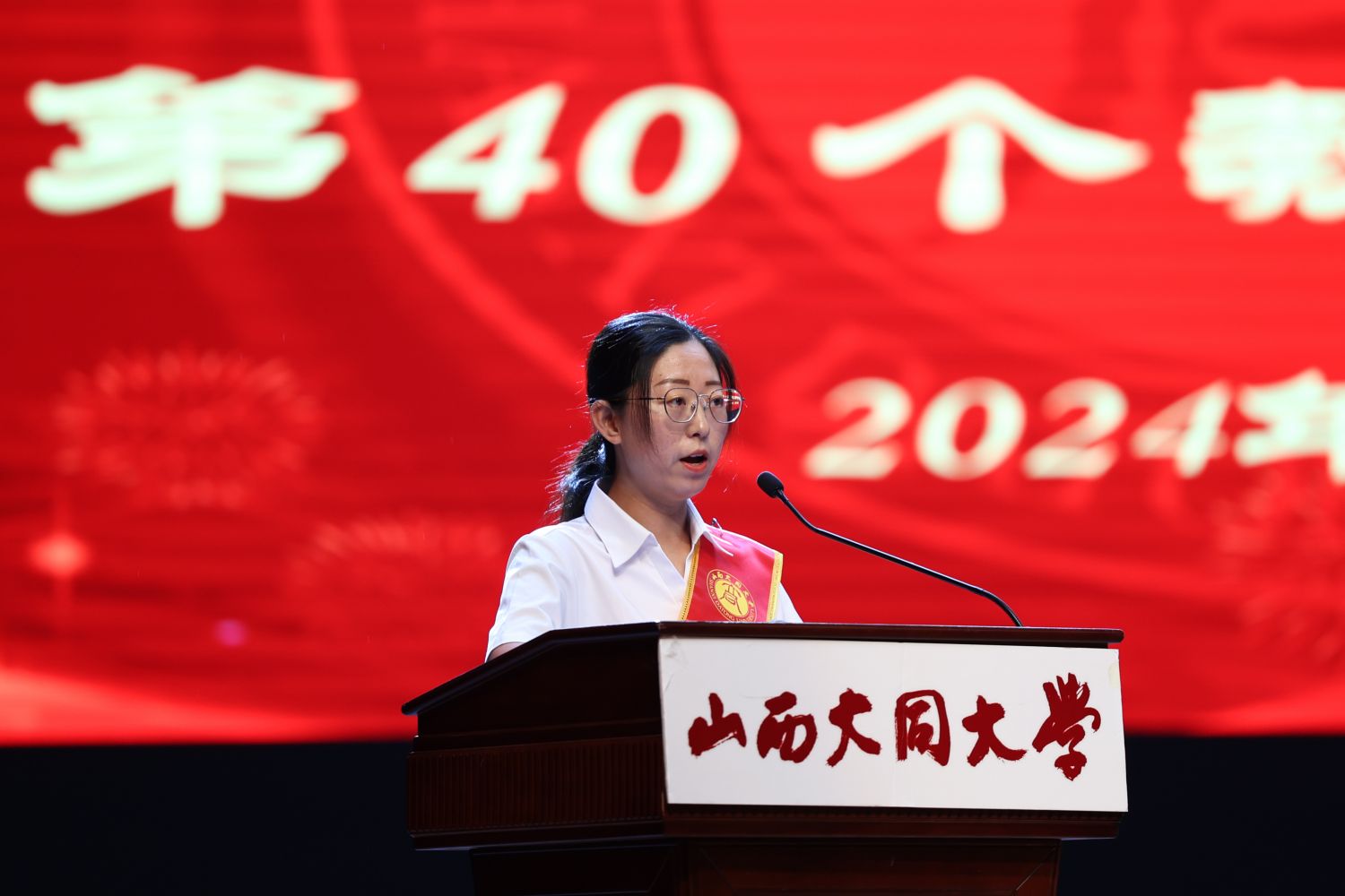标兵代表、农学与生命科学学院博士教师武娟,光荣从教30年教授代表、荣退教师代表苏鹏,新入职教师代表、计算机与网络工程学院博士教师王强先后发言,感谢党和国家、学校的培育之恩,表达对教书育人的无限热爱,以及投身教育事业的坚定决心。