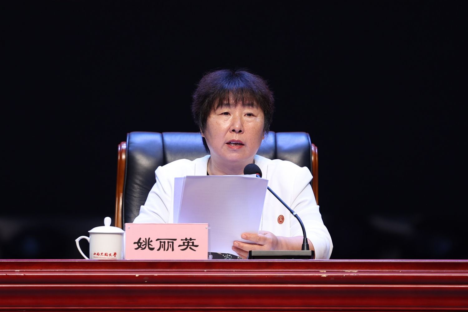 姚丽英在主持大会时指出,大会对优秀个人进行了表彰,举行了从教30年教授荣誉颁发、老教师荣退和集体宣誓仪式,充分彰显了“艰苦创业、勠力同心、执着奉献、开拓创新”的同大精神,体现了一代代同大人对教育事业的永续传承。全体教职员工要继续坚定“捧着一颗心来,不带半根草去”的坦荡与执着,同心同德,齐心合力,以身在校园、心怀天下的胸怀,在教师这个平凡而崇高的岗位上无私奉献、拼搏努力,为学校事业高质量发展拓新局、展新姿、创辉煌。