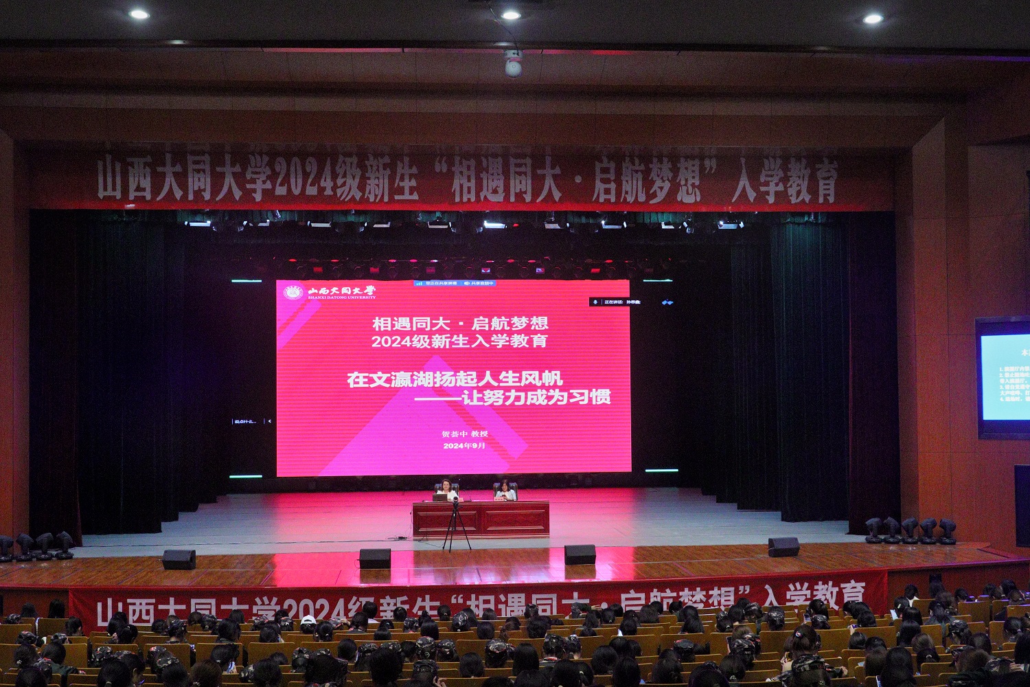 为全方位助力2024级新生顺利开启人生新征程,学会适应大学生活、明确学习目标、规划未来发展,更好地应对大学学业挑战,全面提升综合素质,9月5日晚,优秀校友、北京师范大学贺荟中教授受邀作专题讲座——“在文瀛湖扬起人生风帆”。主会场设在本真楼,新生在天翔体育馆与新平旺校区通过直播同步观看。党委学生工作部副部长肖海雁主持。