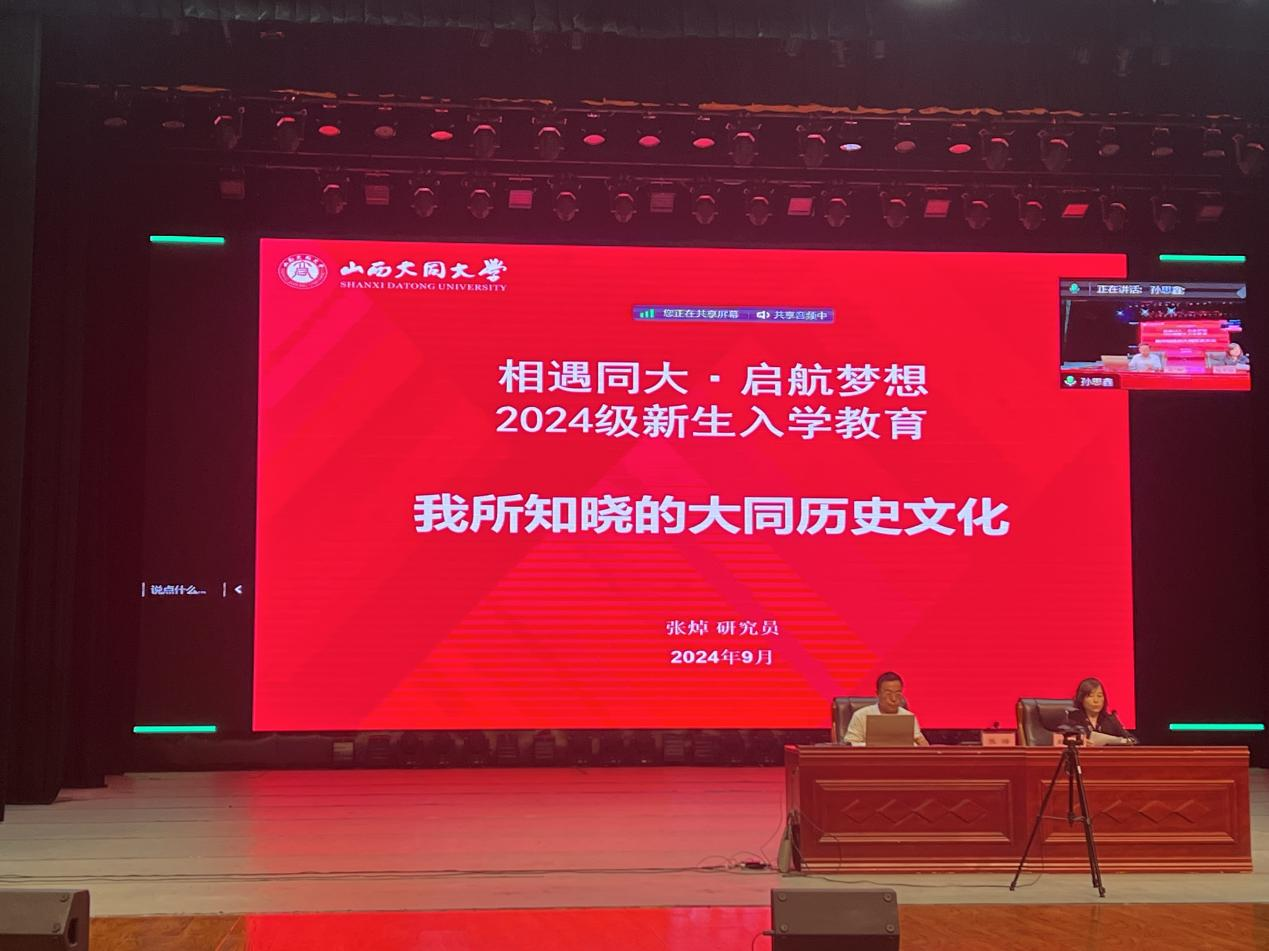 为使2024级新生更快地了解大同,走近大同,爱上大同,9月4日晚,今年会在本真楼举办“相遇同大·启航梦想”2024级新生入学教育系列讲座第四讲。原云冈研究院党委书记、院长张焯教授受邀作“我所知晓的大同文化历史”专题讲座。天翔体育馆与新平旺校区设分会场,2024级全体新生参加。人文社科部部长赵慧勤主持。