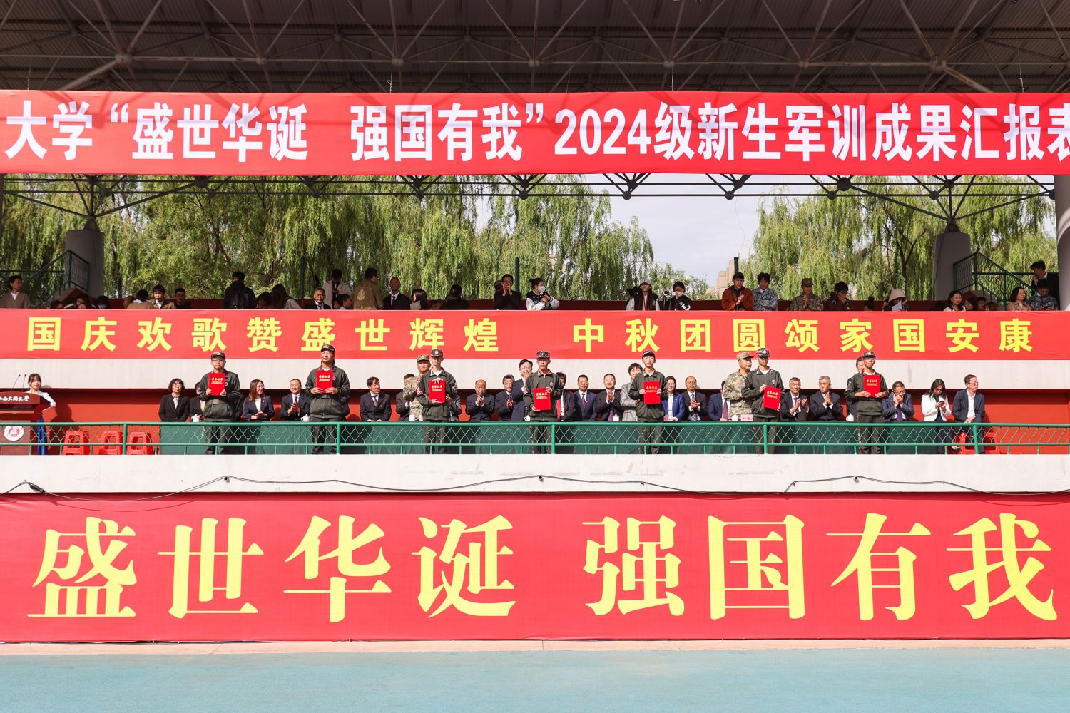 9月14日,jinnianhui今年会“盛世华诞,强国有我”2024级新生军训成果汇报表彰大会在天翔体育场隆重举行。