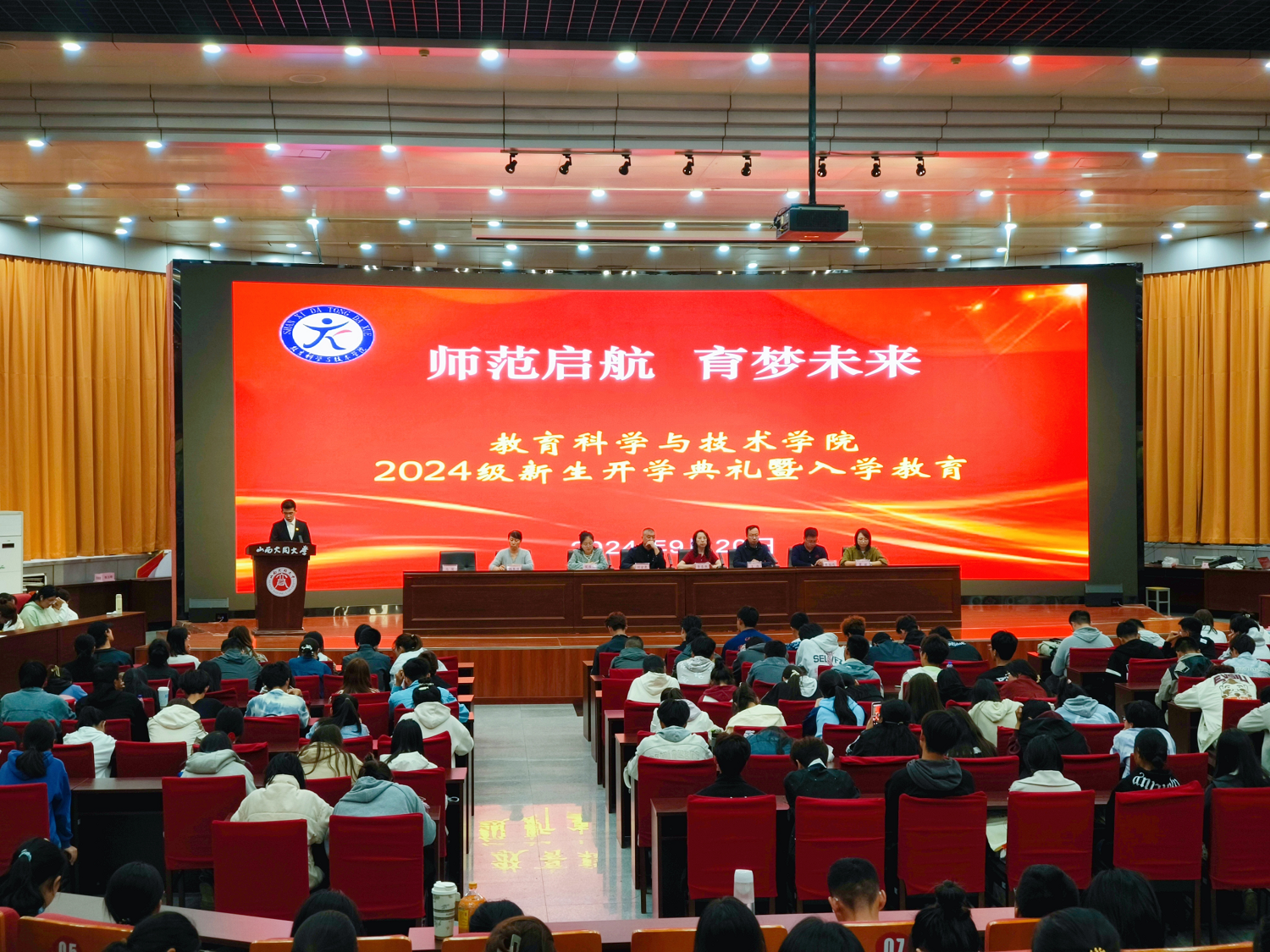 为增进师生之间的沟通与交流,帮助新生尽快适应大学生活,提升学科专业认知,9月20日,教育科学与技术学院在慎思楼报告厅召开2024级新生开学典礼暨入学教育大会。学院领导班子、系主任、新生班级班主任和400余名2024级本科新生参加。学院党委副书记侯雁伶主持。