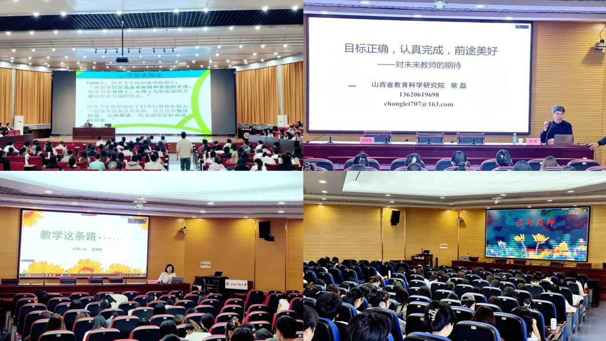 本次师范生培训讲座邀请5位优秀教师,大同市教育科学研究中心心理教研室主任张磊老师、山西省教育科学研究院质量检测与评估中心副主任常磊老师、山西省特级教师大同一中高中部杨勇老师、山西省特级教师大同一中初中部年级主任曹海莺老师和北岳中学教导主任宋建宇老师,主要从青少年思想状况、个人素养发展和教师职业技能三方面着手,从青少年心理健康教育、自身的职业规划与个人成长性格,爱好,特长等方面让学生们对中学教师的工作有了更直观、更深入的了解,强调了教师需要有创新理念、扎实的专业知识以便对学生进行高质量的培养。