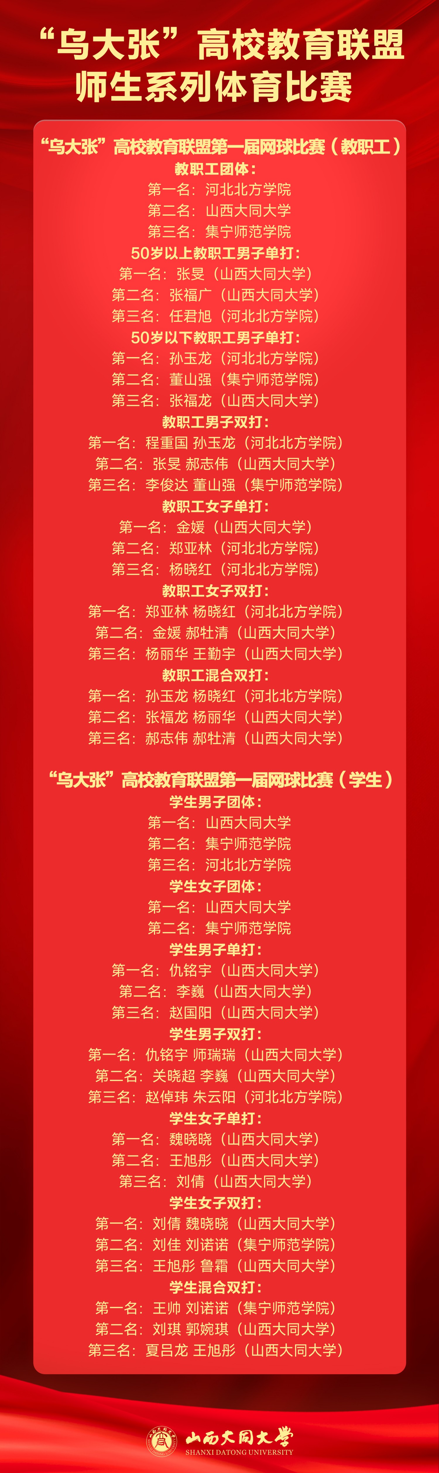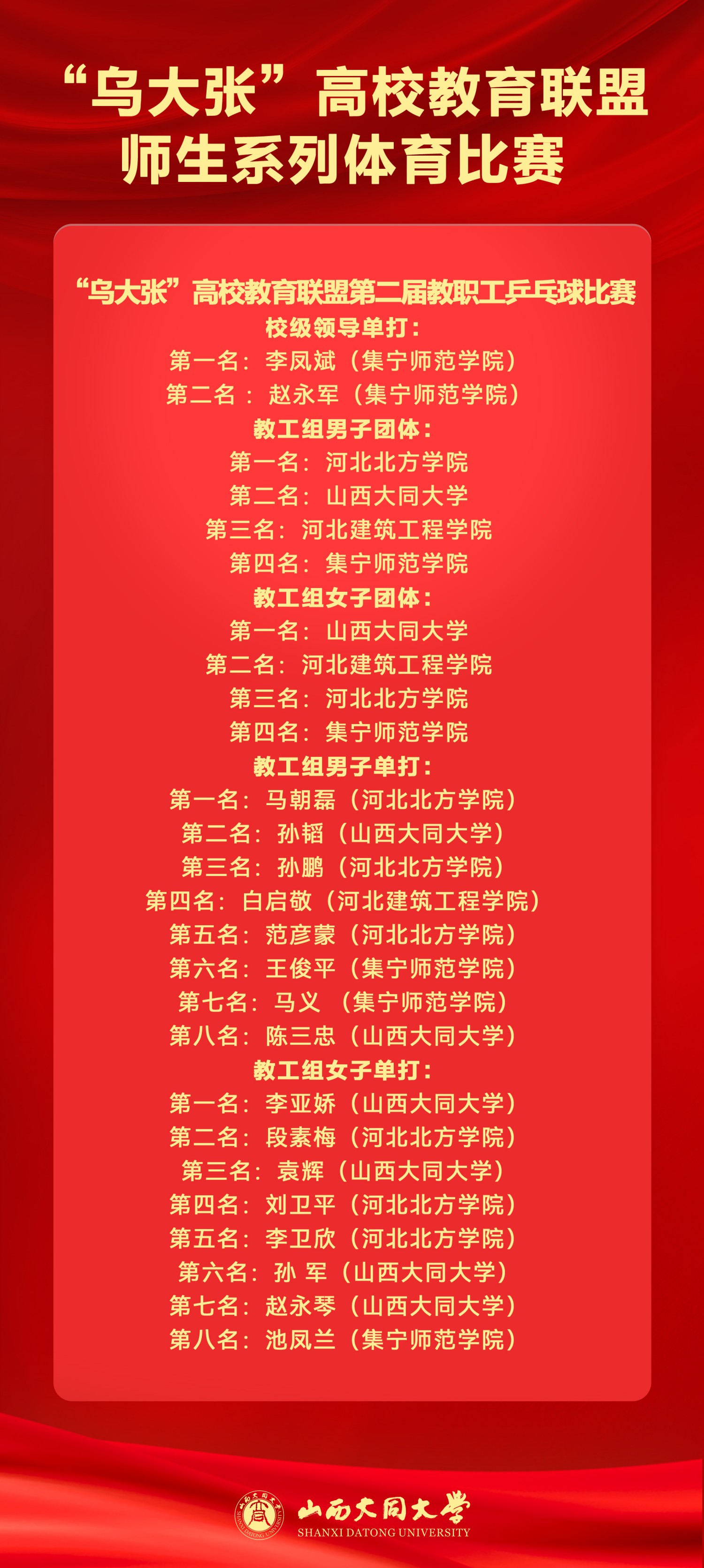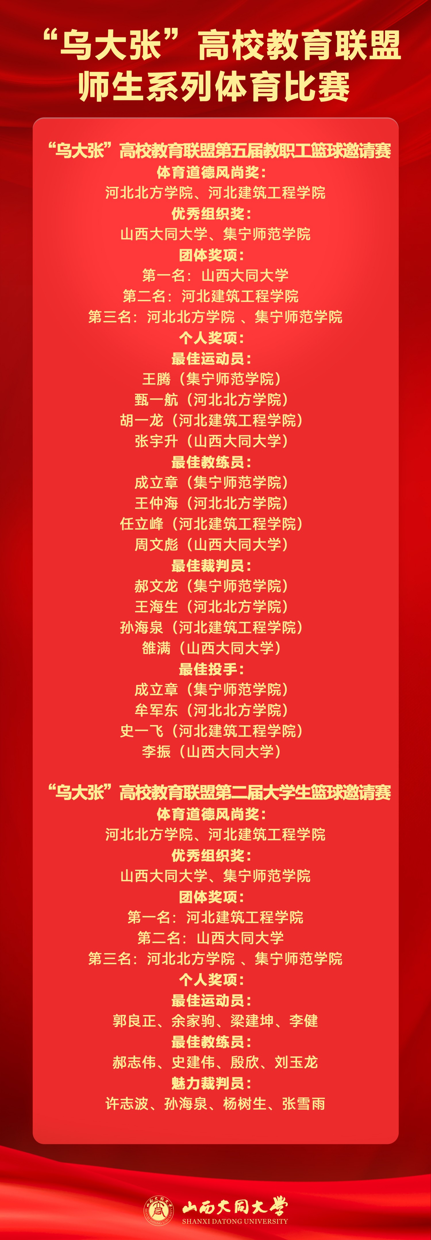 “乌大张”高校教育联盟师生体育系列比赛获奖名单