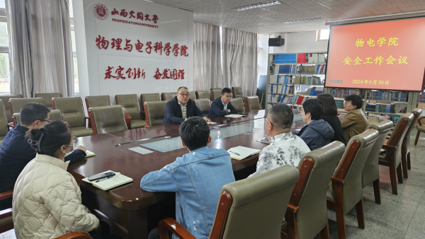 9月30日下午,物理与电子科学学院在明理楼301召开安全工作会议。会议由院党委书记张晓云主持,学院领导班子成员及科级以上干部参加会议。