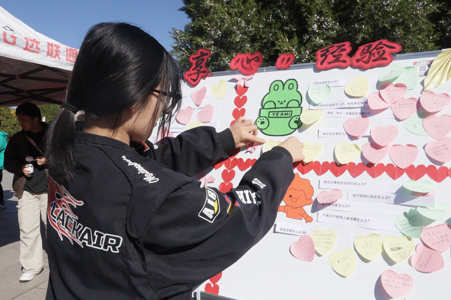 围绕“共建共治共享同心健心安心”主题,本次现场咨询活动共设立“共建‘心’世界”(沙盘体验区)、“治愈‘心’历程”(手工疗愈区)、“分享‘心’经验”(经验分享区)、“绘制‘心’同大”(绘画制作区)、“勇攀‘心’高峰”(运动活动区)、“焕发‘心’力量”(心理咨询区)等六个区域。师生共同体验了互动游戏,14位专兼职心理咨询师共接受学生咨询120余人次,发放心理健康宣传材料1300余份。大家在过程中体验,在行动中感悟,进一步加强对自我心理状态的关注,提升自身幸福感与满意度,增强心理健康意识。(来源:学生工作部 责编:赵鑫)