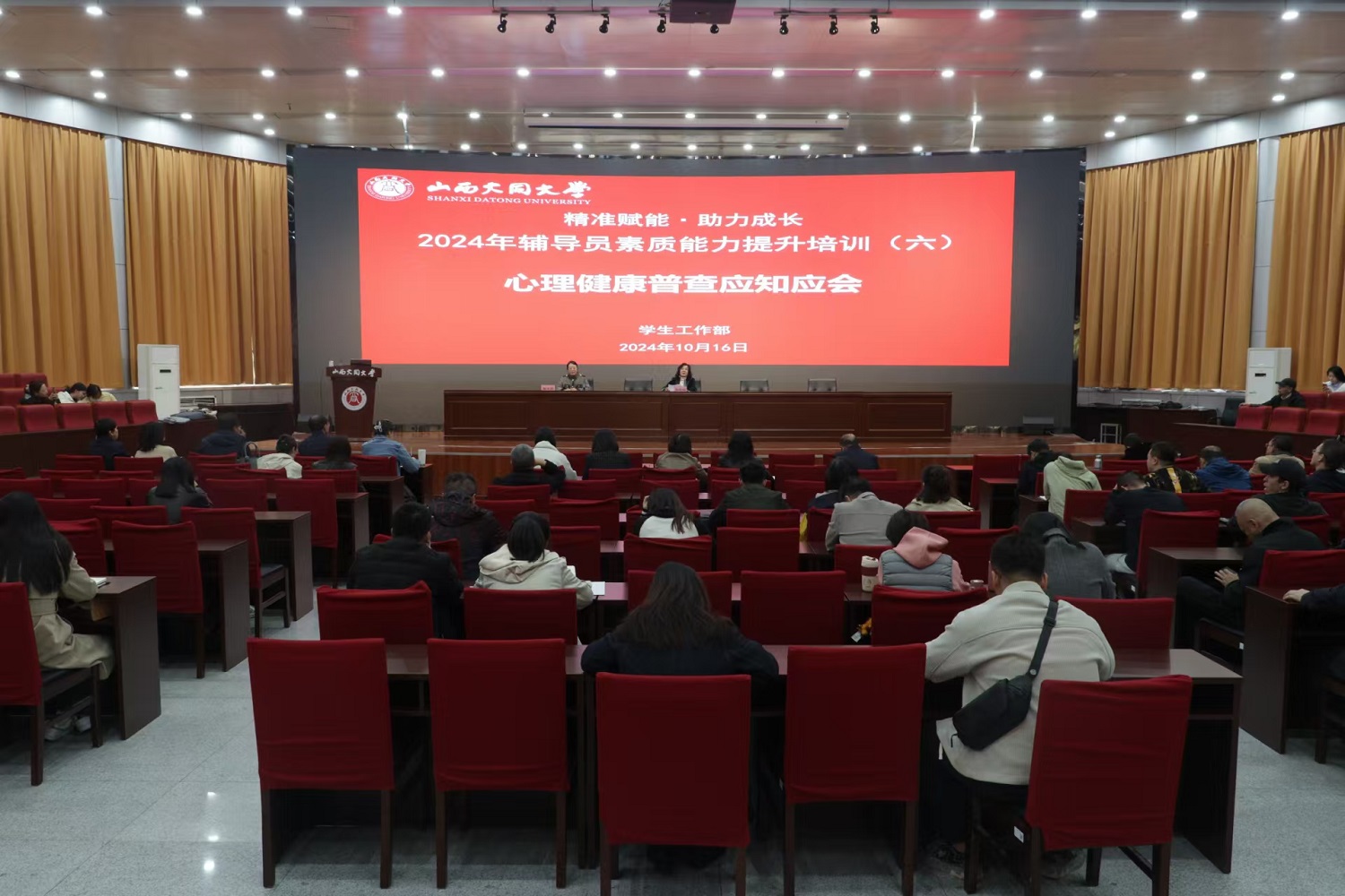 为提升辅导员心理工作能力,帮助在校生更好地了解自身的心理健康状况,10月16日,今年会举办“精准赋能·助力成长”2024年辅导员素质能力提升培训第六期——大学生心理普查应知应会。全体专兼职辅导员参加培训。