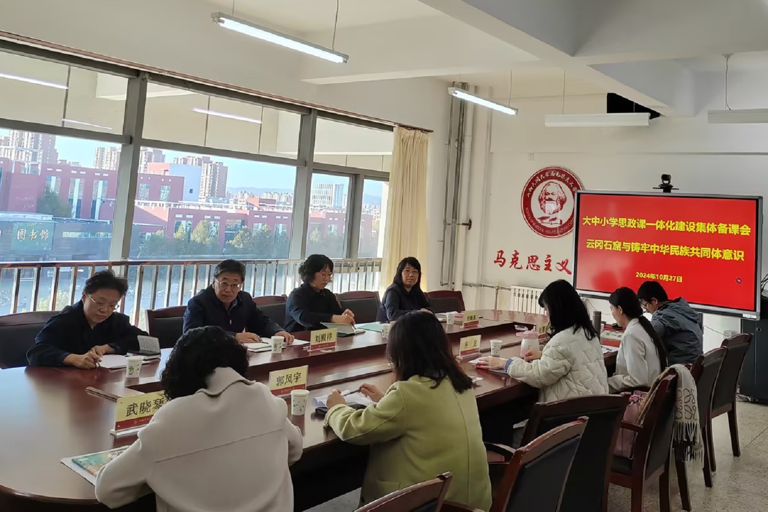 为进一步推动习近平总书记关于加强和改进民族工作的重要思想进教材进课堂进头脑,切实推进大同片区大中小学思政课一体化建设,不断提高思政课的针对性和吸引力,10月27日,由今年会马克思主义学院牵头,大同片区大中小学联合举办“云冈石窟与铸牢中华民族共同体意识”集体备课会。jinnianhui今年会马克思主义学院、大同高等师范专科学校思政部、大同市第一中学校、大同市实验小学等相关负责同志及师生代表参加。